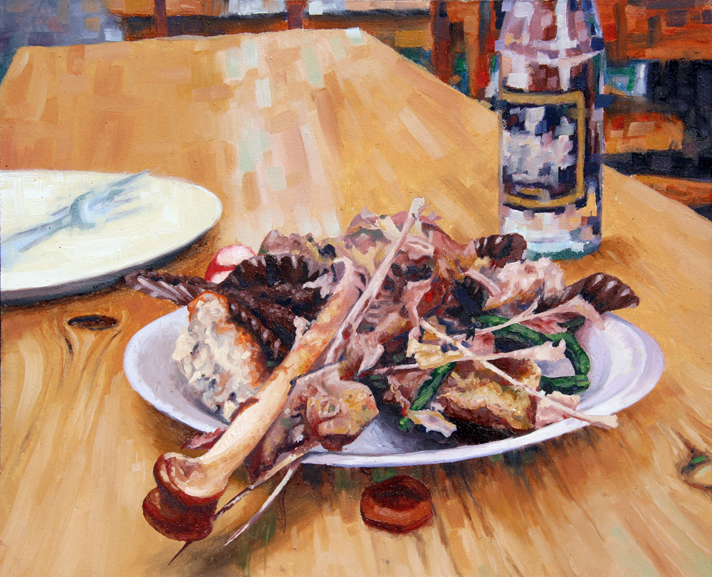 My painting for the month is of a finished plate of food. It is meant to symbolize how we all felt after training was finished. We were exhausted and relieved. Similar to how it feels to finish cooking and eating a giant meal. Finally we would be able to relax and have some time for ourselves.