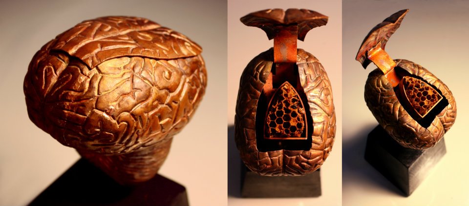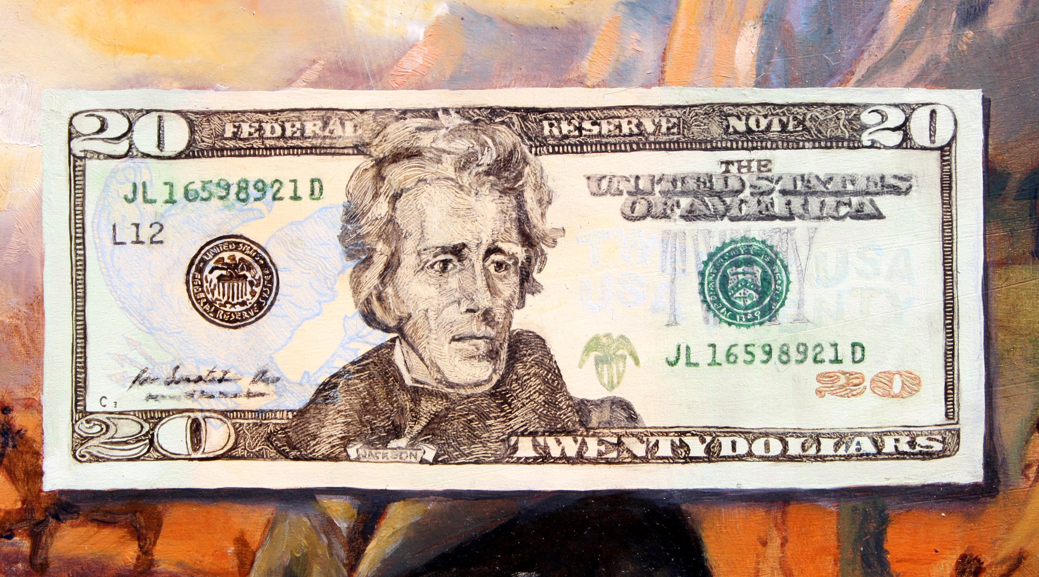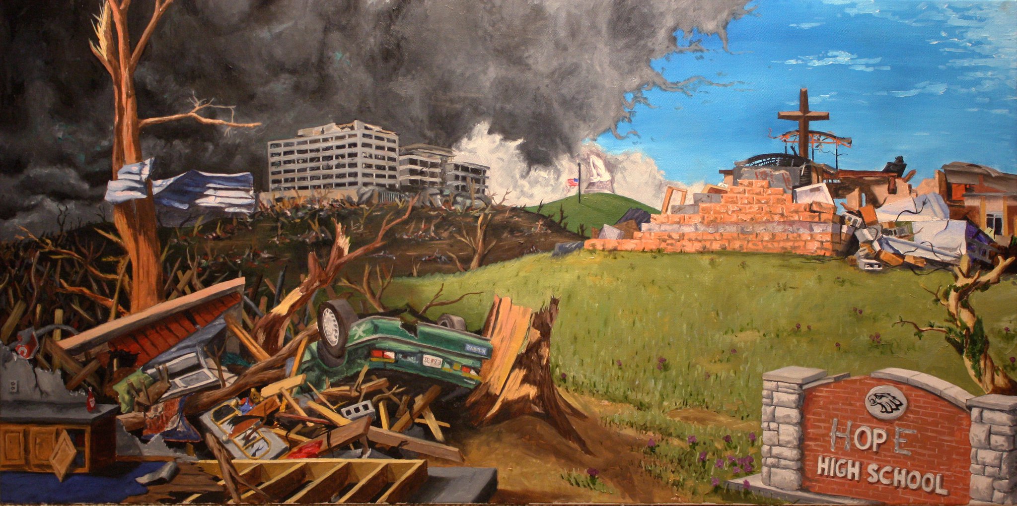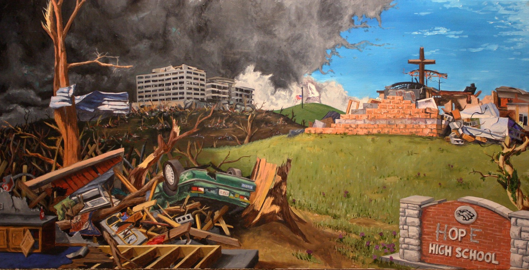 Kirsten – Encaustic and oil on boardKirsten detailUntitled – Charcoal on paperIgnoble Currency – Oil on woodIgnoble Currency detailOld Man’s Opus – Oil on canvas (Commission)Bracelet – Sterling Silver and zebra agateRing – Sterling silver, garnets, and pearlReliquary – Copper, wood, and wax combPages from Illuminated Manuscript – Gold leaf, silver leaf, egg tempera and ink on tea-dyed paperIlluminated Manuscript on display at Fontbonne University GalleryHope for Joplin – Oil on canvas (property of city of Joplin, MO)